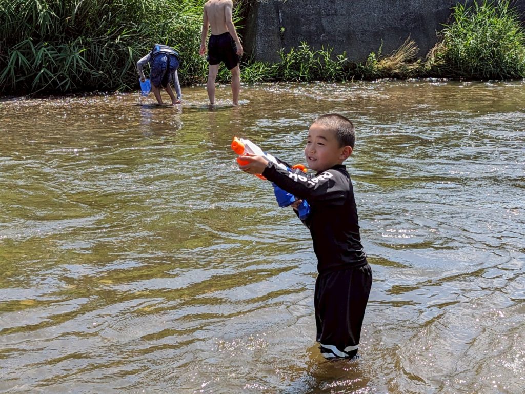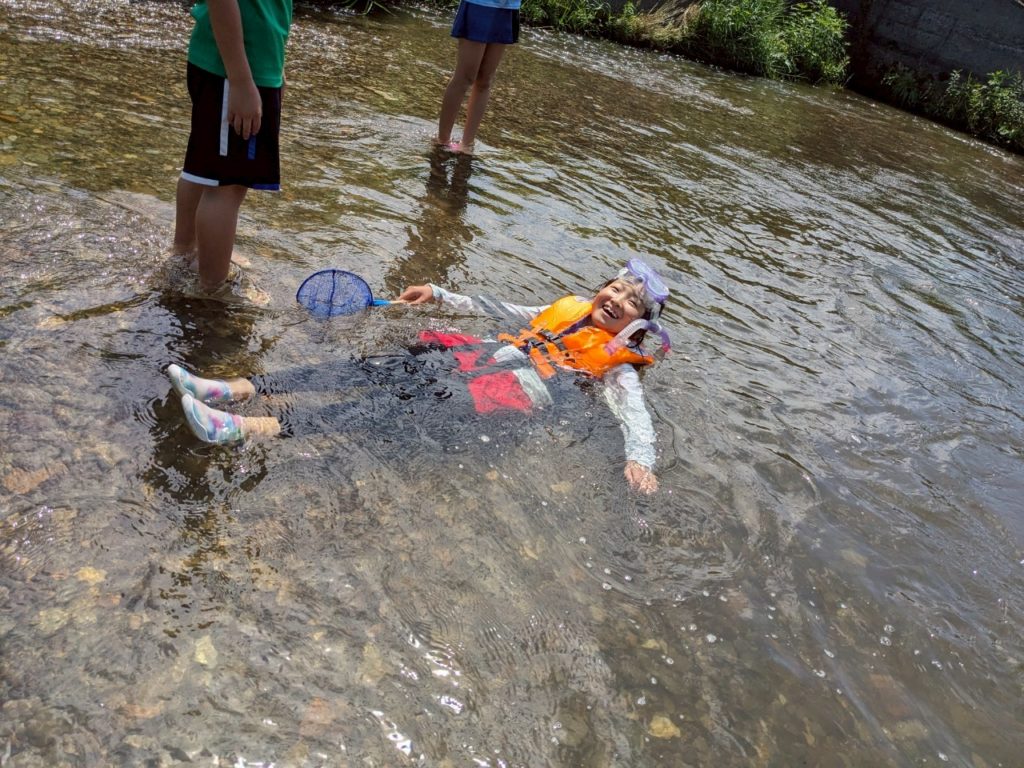 魚を捕まえたり、水切りをしたり、プカプカ浮いたり、暑い一日だったのでたっぷり水遊びを満喫です💦